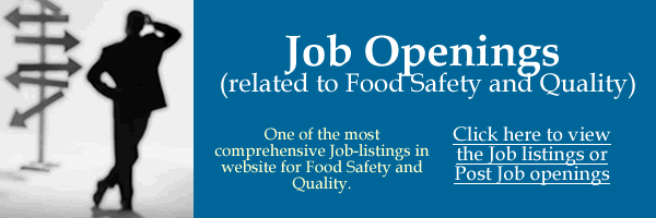 Welcome to Food Safety/Quality Job Openings Website We are providing comprehensive food safety/quality related jobs. Daily we have about 1,000 visitors/day and 5,000 clicks/day. Most comprehensive job list for Food Safety/Quality Areas |